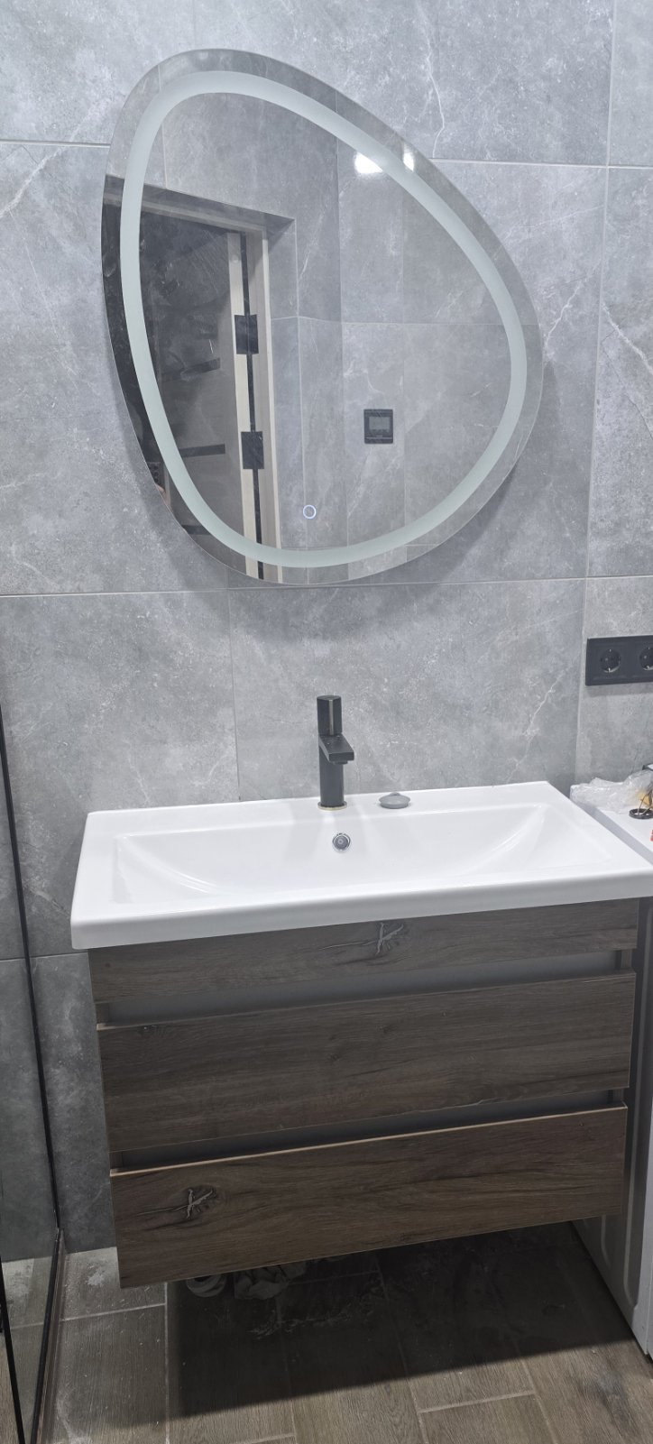 - Тумба с раковиной в ванную под дерево 80 см шириной без ручек Пик Хотин с умыввальником CERS T 308019 Mh + UM-8052 (8019) п.