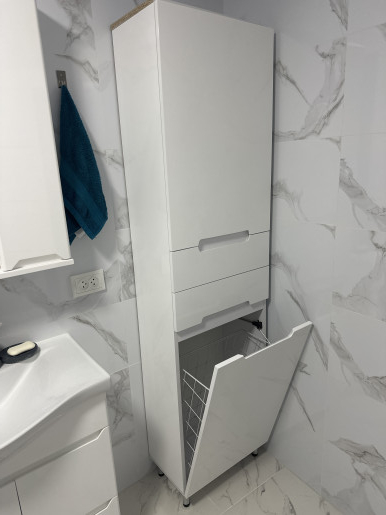 - Шафа-пенал у ванну кімнату 40 см шириною з кошиком для білизни Санвестгруп Вісла П 40КL Вісла.